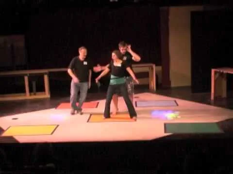 The video is from a Prompt Play performance at Riverside Theatre in Iowa City. The performers you see were drawn randomly from audience members who had not rehearsed or heard the prompts before the performance. All their actions are motivated by prompts spoken into their earphones.